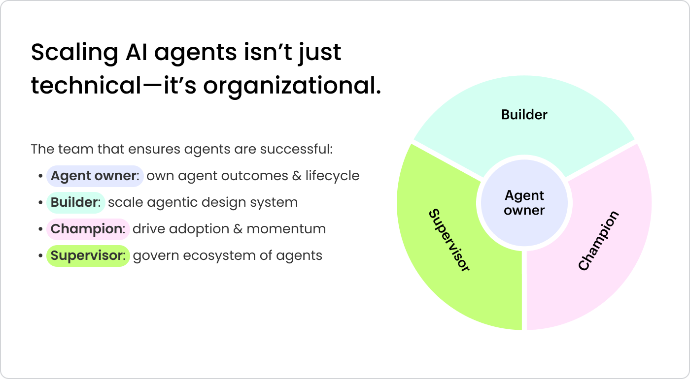 - Agent Owners act like systems PMs. They align agents to business goals and drive iteration.