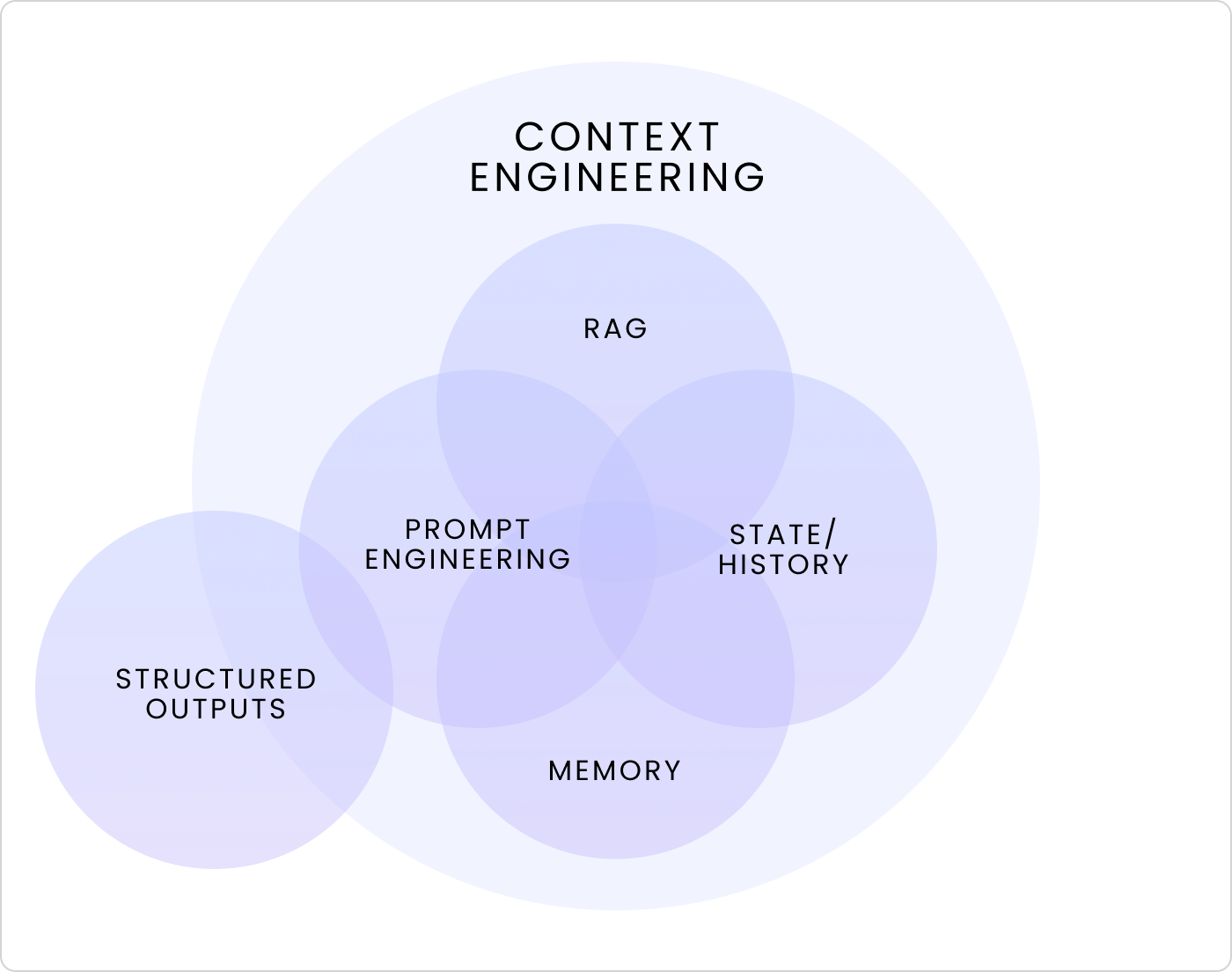 At its core, context engineering is systems discipline — how we structure, retrieve, and manage information so that LLMs can reason effectively. It spans several overlapping disciplines — RAG, memory, state, history, prompt engineering, and structured outputs — all working together to decide what context a model should see, ignore, or reuse across state, store, and runtime context.