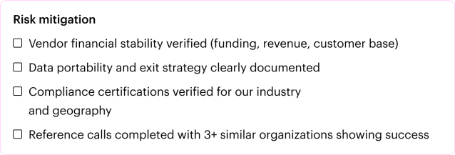 - If your total score is 8-11: Run time-boxed pilots (90 days max) to validate specific concerns, then decide.