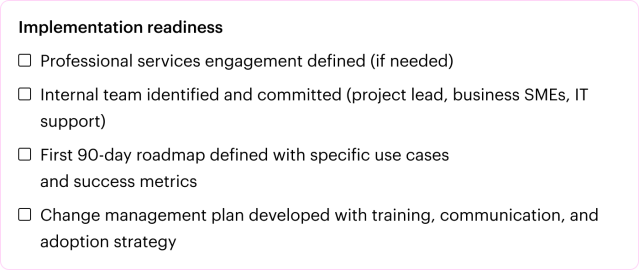 - If your total score is below 8: Focus on foundational work (data readiness, executive education) before platform selection.