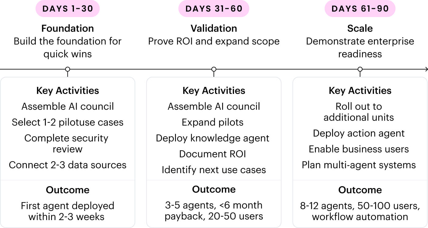 - Lock in first 1-2 pilot use cases with committed business owners
