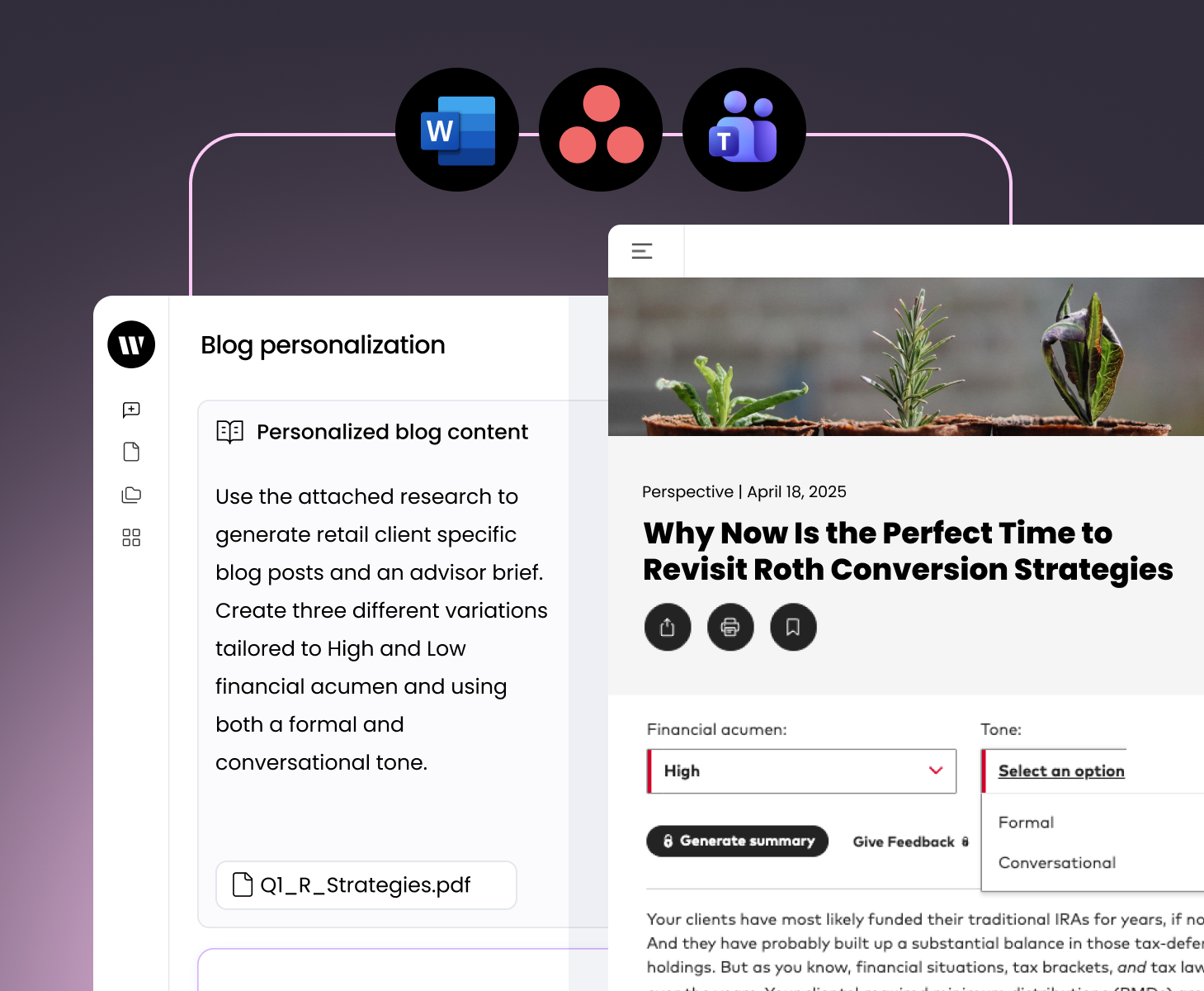 Enable field teams to create bespoke content for every client—so they can focus on relationships, not repetitive content creation.