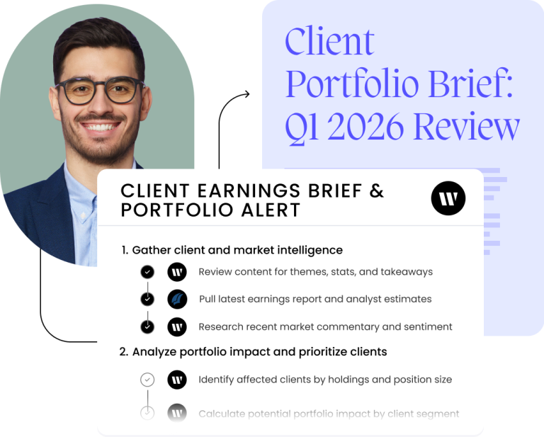 Send personalized daily client intelligence briefs and market analysis from third party sources like FactSet and Pitchbook.